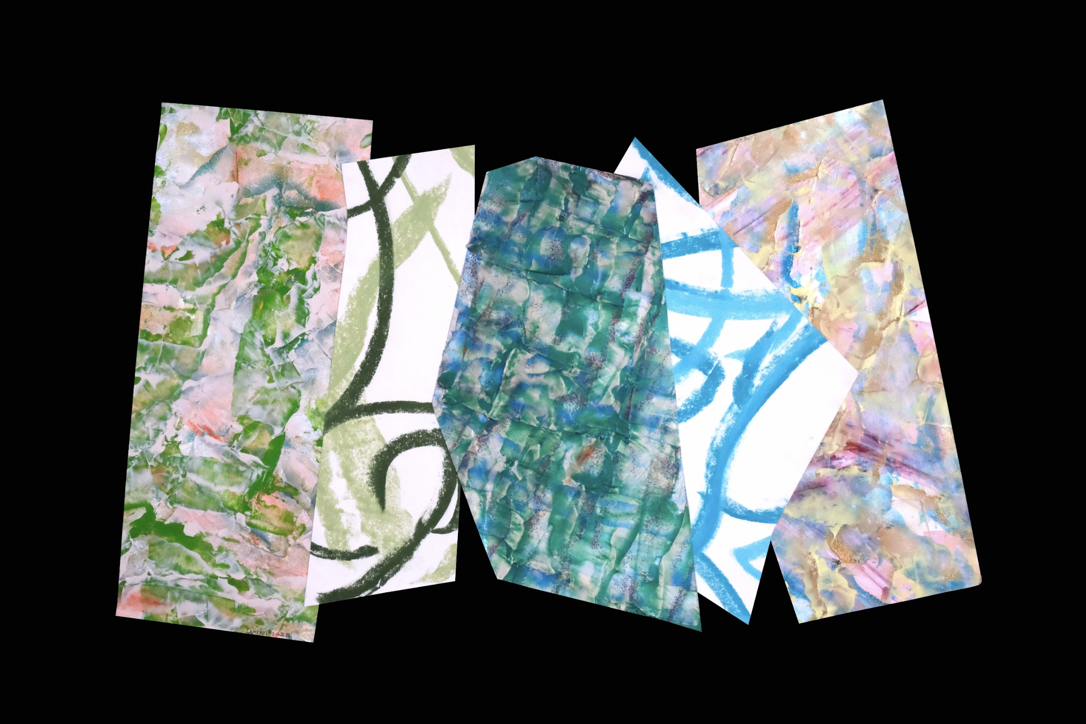 Gatewood's signature style of mixed media collages involves combining painting and drawing with other media. He merges his abstract work with materials like charcoal, chalk pastel, acrylic paint, and oil sticks. He often incorporates up to a dozen individual drawings or paintings into one finished piece with his unique layering technique. In some cases, he applies a paper-weaving technique he developed while teaching art in the New York City Department of Education.”