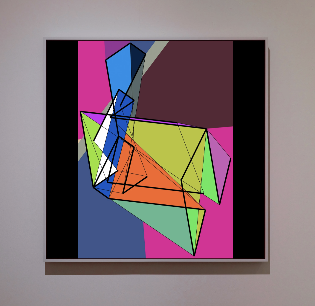 “Manfred Mohr’s P-777_MA1 is a landmark from his space.color and space.color.motion phases, marking his shift from black-and-white into vibrant generative color. Powered by custom software running a complex 6-dimensional animation program, the work generates endlessly unique compositions with every restart—never repeating, always evolving. Color here functions as a procedural variable, revealing the spatial complexity and algorithmic ambiguity central to Mohr’s practice. Presented by bitforms gallery as part of Art Basel Miami Beach’s inaugural Zero 10 initiative, the work bridges the history of algorithmic art with the present moment and affirms generative systems as a vital, enduring creative language.”