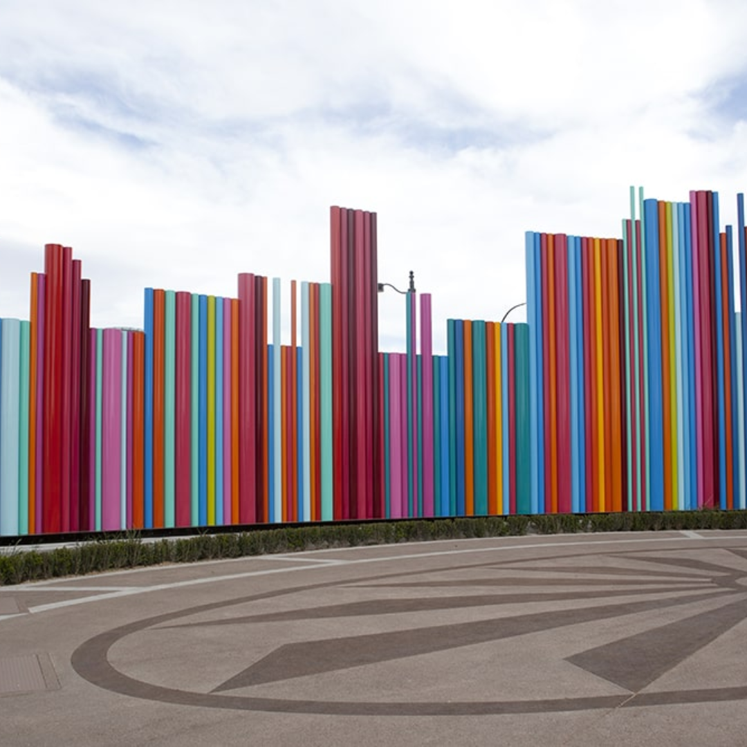 Heading downtown? Snap a picture in front of Tim Bavington’s vibrant installation “Pipe Dream” at the The Smith Center before catching a musical smash.